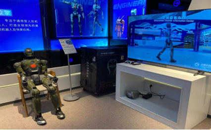 在合肥市紫云山(包河)文化创意产业园,讲解员向记者介绍了一款成功完成前空翻特技动作的PM01人形机器人。这款机器人由安徽众擎机器人公司制造,旨在打造全球领先的通用机器人及场景应用。