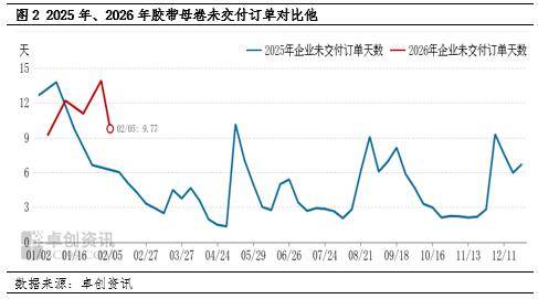 卓创资讯对48家胶带母卷生产企业调研,其中5家暂未确定春节假期安排,其余多数企业计划停机10-26天,行业平均停机时长14天,较去年延长约1.5天。从区域停机节奏来看,华北市场企业集中在2月7日-10日进入假期,华东市场集中在2月12日前后,华南市场则于2月11日-12日集中停机,整体呈现华北停机早于华东、华东与华南节奏相近的特点。